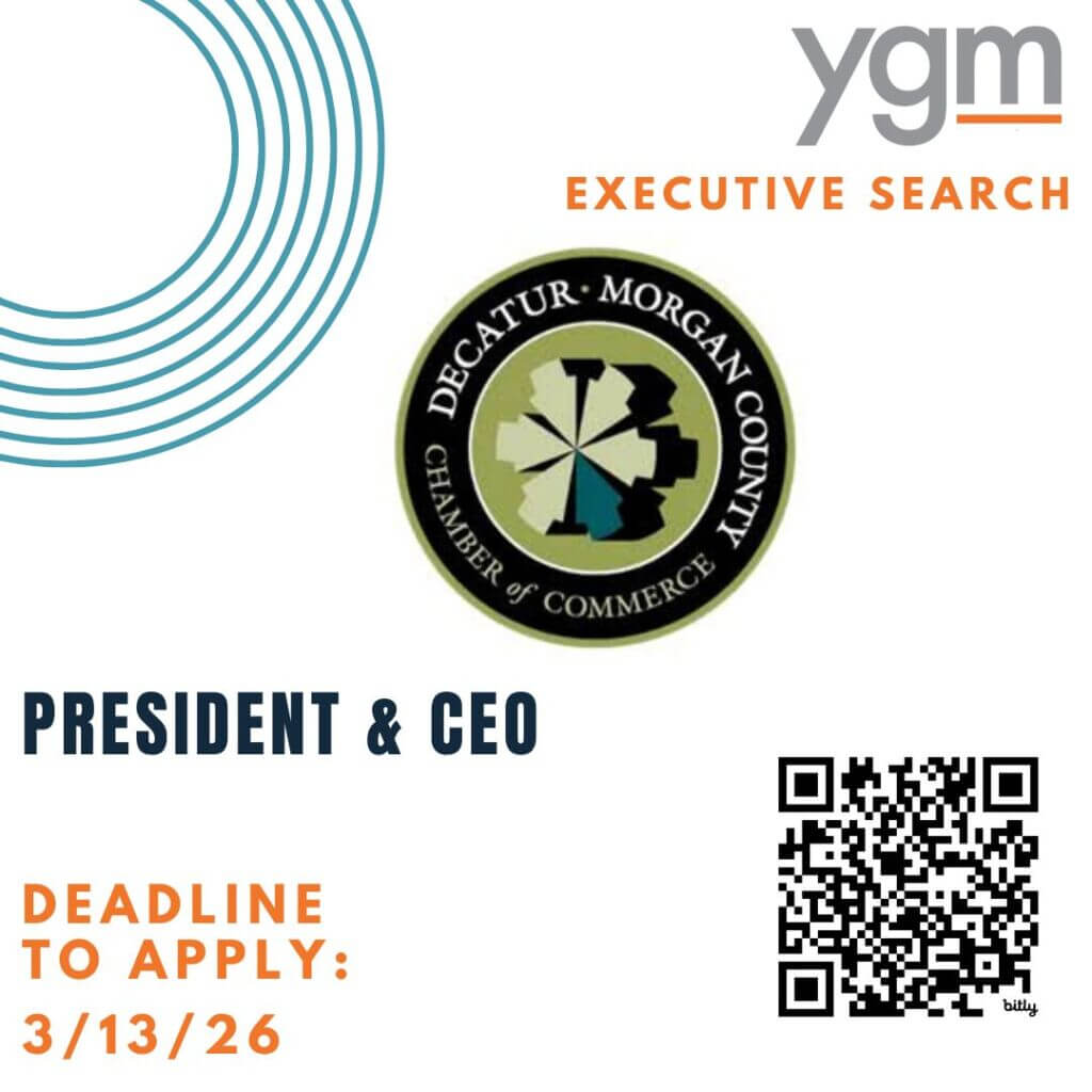 Search Underway for Chamber President & CEO Following the announcement last month that President & CEO Crystal Brown will retire in July, the Decatur-Morgan County Chamber of Commerce has retained YGM, LLC to conduct a nationwide search for the Chamber’s next President & CEO. This executive leadership role will guide the Chamber’s strategic vision, strengthen…